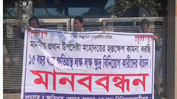 বিএসইসির চেয়ারম্যানের পদত‍্যাগের দাবিতে বিনিয়োগকারীদের মানববন্ধন