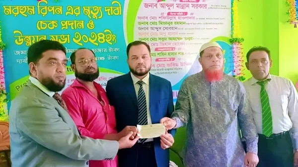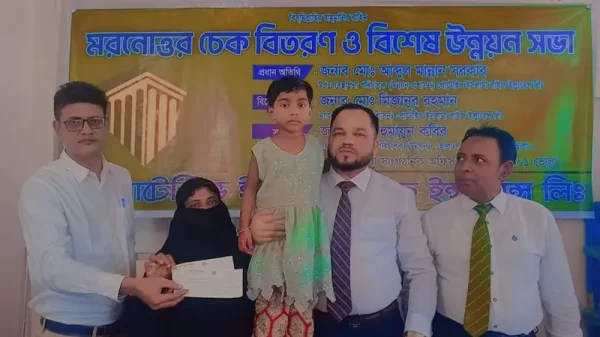 সংবাদ বিজ্ঞপ্তি: প্রোটেক্টিভ ইসলামী লাইফ ইন্স্যুরেন্স ভোলা কার্যালয়ে গ্রাহকের মৃত্যুদাবি পরিশোধ করেছে। বীমা গ্রাহক আছমা বেগমের মৃত্যুতে সম্প্রতি ১ লাখ ৩০ হাজার টাকার মৃত্যুদাবির চেক তার নমিনীকে প্রদান করা হয়। অনুষ্ঠানে