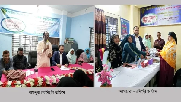 সংবাদ বিজ্ঞপ্তি: সম্প্রতি প্রোটেক্টিভ ইসলামী লাইফ ইনস্যুরেন্সের রায়পুরার নরসিংদী ও সাপমারা নরসিংদী অফিসে উন্নয়ন সভা অনুষ্ঠিত হয়। রায়পুরায় অনুষ্ঠানে প্রধান অতিথি হিসেবে উপস্থিত ছিলেন উপ-ব্যবস্থাপনা পরিচলাক (উন্নয়ন) আব্দুল মান্নান সরকারসহ