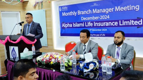 সংবাদ বিজ্ঞপ্তি: আলফা ইসলামী লাইফ ইনস্যুরেন্স লিমিটেডের প্রধান কার্যালয়ে মাসিক ব্রাঞ্চ ম্যানেজার মিটিং ডিসেম্বর-২০২৪ অনুষ্ঠিত হয়েছে। মঙ্গলবার (০৩ ডিসেম্বর) কোম্পানির প্রধান কার্যালয়ের সেমিনার কক্ষে এই মিটিং অনুষ্ঠিত হয়। অনুষ্ঠানে প্রধান