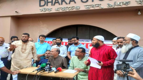 নিজস্ব প্রতিবেদক: ইসলামীধারার পাঁচটি ব্যাংকের শেয়ার শূন্য ঘোষণার প্রতিবাদ জানিয়েছে বাংলাদেশ পুঁজিবাজার বিনিয়োগকারী ঐক্য পরিষদের ব্যানারে ক্ষুদ্র বিনিয়োগকারীদের একাংশ। বৃহস্পতিবার (৬ নভেম্বর) ঢাকা স্টক এক্সচেঞ্জের সামনে তারা মানববন্ধন করে। এসময়