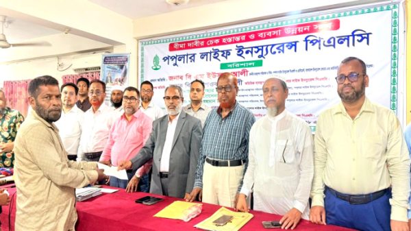 বরিশালে পপুলার লাইফের বীমা দাবির চেক হস্তান্তর